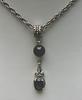 Die Anhängeröse ist aus Tibetsilber. Der eingefasste Granat hat eine Grösse von 8x5 mm, die Granatperle ist 7 mm im Durchmesser.