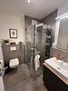 Im Flur befindet sich ein maßgefertigter Einbauschrank, der passgenau in die Nische integriert wurde und Stromkasten sowie Fußbodenheizung elegant verdeckt. Er bietet viel Stauraum für Putzmittel, Vorräte und Alltagsgegenstände – dieser könnte mit übernommen werden. Sowie die Badmöbel, welche auch zur möglichen Übernahme sind.