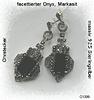 Die Markasiten sind sehr dicht aneinander gefasst . Sie haben einen Durchmesser von 1 mm. Der Onyx ist facettiert und hat die Maße 11x8 mm. Seine Farbe ist tiefschwarz. Gesamtlänge 45 mm