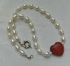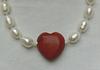 Herzkette, rotes Karneolherz mit weisser Süsswasserperle