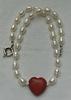 Eine Perlenkette in einen romatischen Design. In dieser Perlenkette ist im Zentrum unten ein Karneolherz eingefasst. Ein sehr schöner Anblick, die weisse Süsswasserperle mit dem roten Karneolherzen.