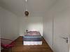 Schlafzimmer: Bett (ohne Matratze), Nachttisch, Kleiderschrank, Schreibtisch, 2 Korbstühle