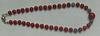 Eine Edelsteinkette in der eine faszinierend schöne leuchtend rote Koralle aufgefädelt ist.