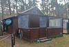 Zum Verkauf steht ein Holzbungalow mit Terrasse, Schuppen und gepachtetem Bootssteg am Hölzernen See in Neubrück auf einem Dauercampingplatz.