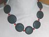 Die in dieser Kette aufgereihten Lavaststeine haben einen Durchmesser von 30 mm. Die rote Koralle ist 4 mm im Durchmesser. Die Kette ist 45 cm lang und sie hat einen Federringverschluss. Euro 19,90
