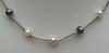 Verarbeitet wurden Süsswasserperlen in den Farben rosa, weis und anthrazit. Die Perlen haben einen Durchmesser von 6 mm.