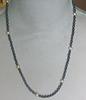 Eine sehr aparte Edelsteinkette mit den Edelsteinen Hämatit und Süsswasserperlen. Nach jeweils 10 aufgereihten Hämatitperlen ist eine weisse Perle eingefasst.