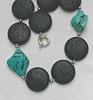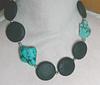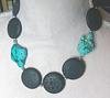 Der Durchmesser von dem Lava beträgt 30 mm, die Türkise sind 35x30 und 30x20 mm und die Magnetperlen sind 5 mm im Durchmesser. Die Kette ist 50 cm lang und sie hat einen attraktiven Federringverschluss. Euro 22,50
