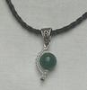 in diesem Schmuckanhänger ist ein runder Heliotrop eingefasst. Durch einen Halbkreis wird der Edelstein umringt von Rocaille. Diese sind farblos. Der Heliotrop hat eine dunkle intensive grüne