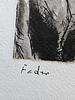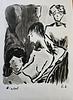 Motiv: Darstellung eines hockenden weiblichen Aktes in ausdrucksstarker, nervöser Linienführung.