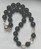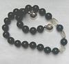 Der in dieser Halskette aufgefädelte Achat ist perfekt hochglanzpoliert. Er hat eine intensive schwarze Farbe, und einen Cabochonschliff. Sein Durchmesser beträgt 15 mm. Die Lemmonsteine sind 20x10 mm im Durchmesser, Die Kette ist 47 cm lang und sie hat einen Magnetverschluss. Euro 22,50 zzgl. Euro 2,50 Versand Impressum: Edelsteinschmuck Hamsterkammer, Karin Pauls, Lehmkuhle 9, 27389 Stemmen, Tel. 04267953621.