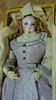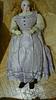 Antike Puppe zu identifizieren: Porzellankopf, Lederkörper, Kleidung und Schachtel.