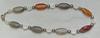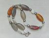 In dieser Edelsteinkette ist abwechselnd ein länglich geschliffener Achatstein sowie silberne Süsswasserperlen und Perlmuttsteine eingefasst.