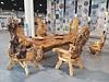 RUSTIKALE TISCHE, STÜHLE UND BÄNKE, und komplette, aus echtem Massivholz handgeschnitzte Garnituren für die Garten und für Esszimmer: