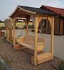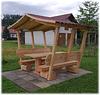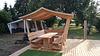 Die Gartengarnitur ist in handwerklicher Arbeit komplett aus Lärche/Dougl. holz gefertigt. Das Dach ist aus Fichte Massivholz mit Nut und Feder.