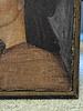 Technik: Es handelt sich um eine bemalte Schicht (Leinwand), die auf ein massives, altes Holzbrett aufgezogen wurde (Marouflage).