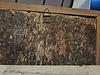Rückseite (Kritisch): Das Holz ist stark vom historischen Holzwurmbefall gezeichnet. Die Struktur ist an den Kanten fragil und weist deutliche Fraßgänge auf. Der Befall scheint alt zu sein, das Holz sollte jedoch pfleglich behandelt werden.
