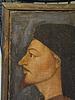 Zum Verkauf steht ein faszinierendes Profilporträt eines bärtigen Herrn, ausgeführt im strengen Stil der italienischen Frührenaissance (Quattrocento). Das Werk besticht durch seine herbe, fast grafische Linienführung und eine außergewöhnliche historische Patina.