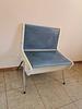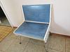 In der Küche meiner Oma steht eine blaue Küchen-Sitzbank aus den 60er Jahren mit blauem Vinylbezug und Metallbeinen.