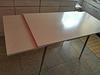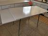 Ein weißer ausziehbarer Küchentisch mit Metallbeinen aus den 60er Jahren sucht ein neues Zuhause!